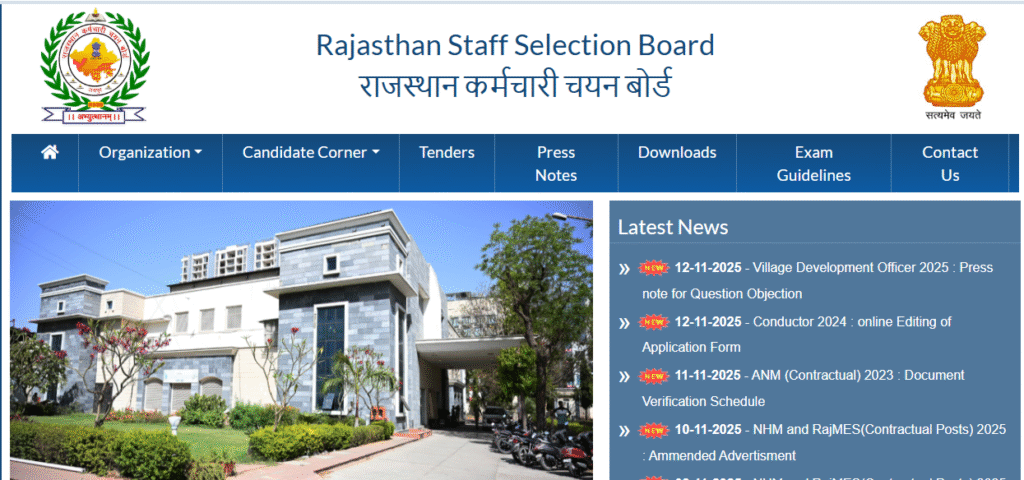 राजस्थान कर्मचारी चयन बोर्ड (RSMSSB) ने वीडीओ भर्ती परीक्षा 2025 की आंसर की नवंबर 2025 के दूसरे सप्ताह में जारी की है। उम्मीदवार इसे आधिकारिक वेबसाइट rsmssb.rajasthan.gov.in से डाउनलोड कर सकते हैं।